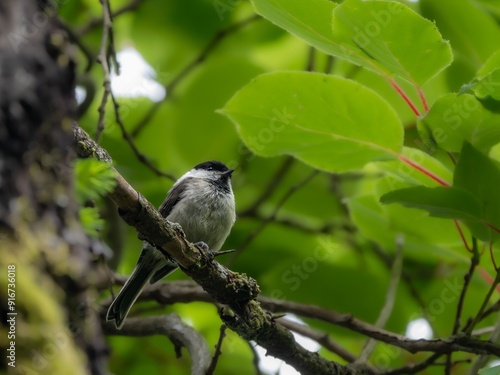 © STOCK THE WORLD, Fototapeta premium 森の中で枝に留まって周りを見渡しているコガラ