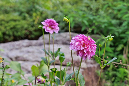 © Satoshi, Fototapeta premium ピンクのダリアの花