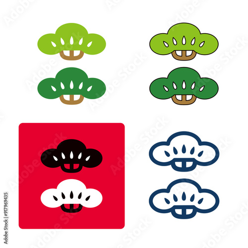 Obraz premium さまざまなタッチの、松竹梅の松のアイコンセット。和柄の松のイラストモチーフ。