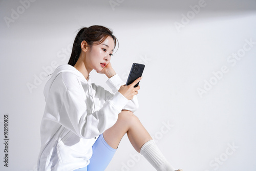 © Hidden Stitch, Fototapeta premium スポーティなファッションをした若い女性のスタイリッシュなポートレート