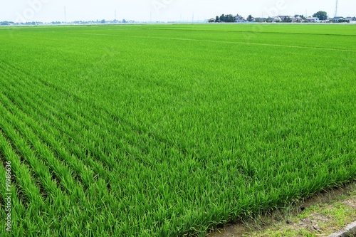 Obraz premium 田植え50日後の田園風景/山形県の庄内地方で、田植え50日後の田園風景を撮影した写真です。