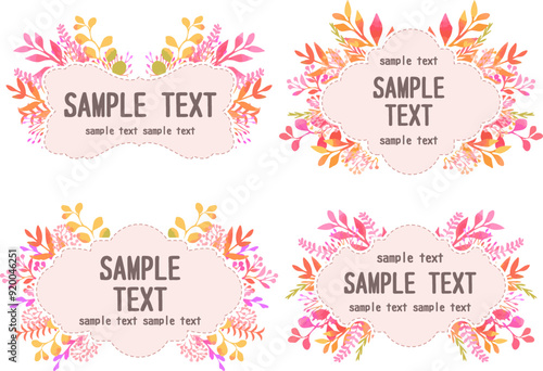 © konohana, Obraz premium カラフルな秋の植物で装飾されたフレームのセット、手描き、水彩風