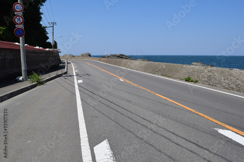 Fototapeta premium 海岸道路/山形県庄内浜の海岸道路を撮影した写真です。由良海岸、加茂海岸、湯野浜海岸周辺の海岸道路です。