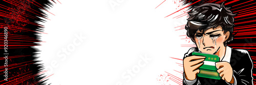 Obraz premium 少ない預金残高を見て絶望する少女漫画風男子ワイドサイズイラスト