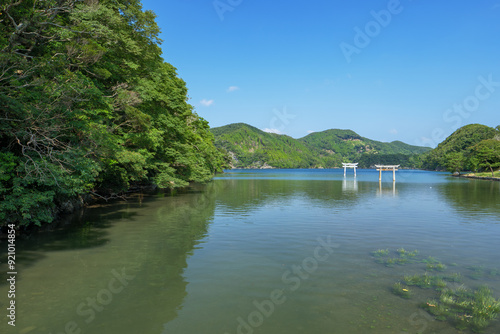© 正人 竹内, Obraz premium 夏の青空と対馬和多都美神社の風景