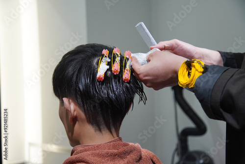 © yamasan, Fototapeta premium パーマロッドを巻く美容師