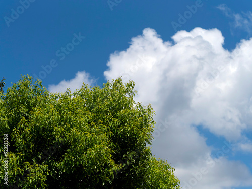 Obraz premium 真夏の青空と新緑の樹木