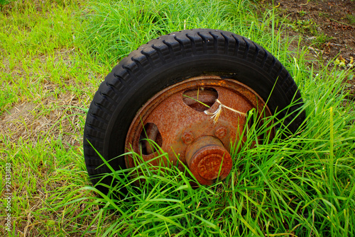 © oninikoniko, Fototapeta premium 不法投棄 車輪