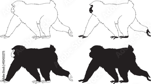 Obraz premium 歩く猿 モノクロ セット