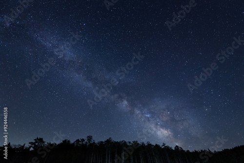 © Seiichi Fukui, Fototapeta premium 八ヶ岳山麓の樹林帯の向こうに輝く天の川の遠景