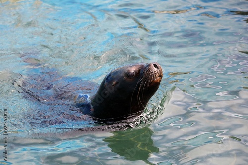 Obraz premium 水面から顔を出して泳ぐメスのオタリア