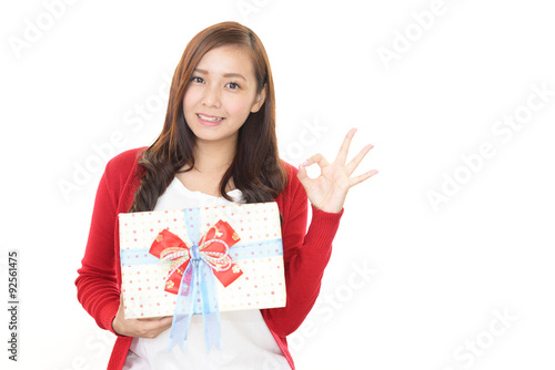 Fototapeta premium プレゼントを持つ笑顔の女性