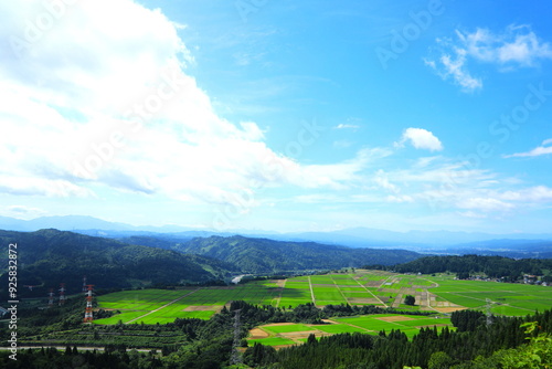 Obraz premium 河岸段丘の大地に広がる田園地帯
