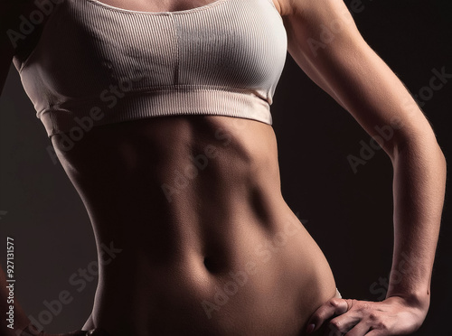 Fototapeta premium フィットネス ヘルシー トレーニング ボディライン スポーツウェア シルエット 強さ 筋肉 健康的 引き締まった スポーツ シンプル クローズアップ...