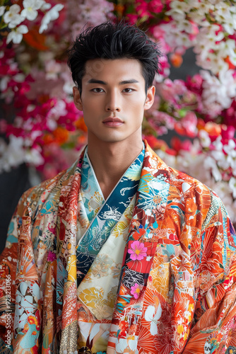 Obraz premium 伝統的なローブを着たアジア人男性の鮮やかな肖像画