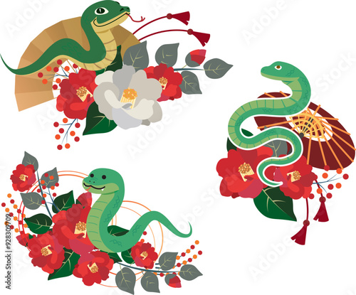 © ken, Naklejka premium 2025年の年賀状 巳年イラスト素材
