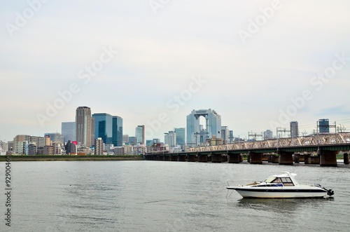 © peia, Fototapeta premium 淀川河川敷からみる梅田高層ビル群