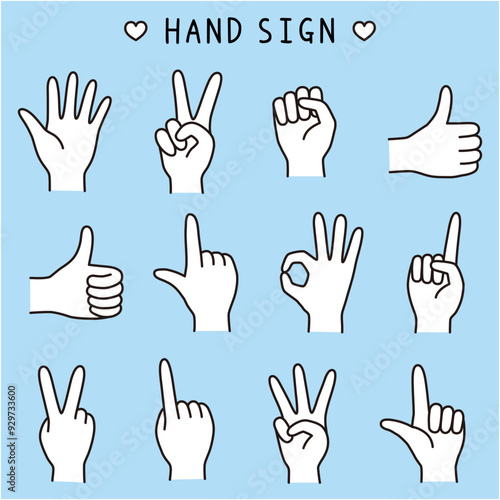 © chie, Obraz premium 手のベクターイラストセット。アイコン、ハンドサイン、指、ピース