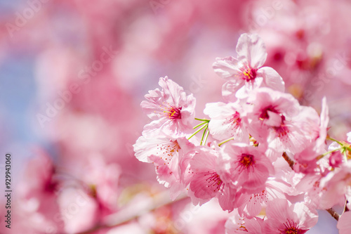 Obraz premium 春の陽射しの中で咲く満開の桜