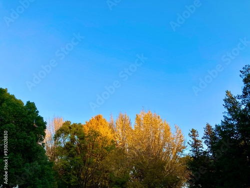 © Matsudondon, Fototapeta premium 秋の空に映える黄色い紅葉