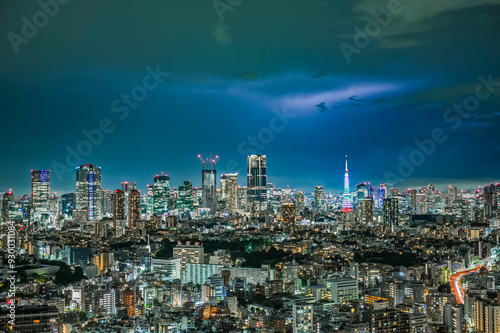 © Kazu8, Fototapeta premium 東京の夜景と雷