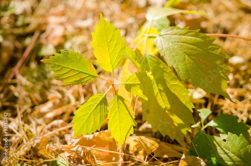 © ola_pisarenko, Obraz premium Виноградный лист на траве