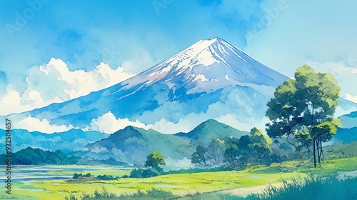 © 雅, Fototapeta premium 美しい富士山の水彩風景画9