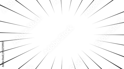 © Spica, Obraz premium シンプルな黒い集中線のフレーム - 放射状に広がる漫画の効果線の背景素材 - 16:9