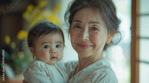 © Hiroyuki, Fototapeta premium 赤ちゃんを抱くおばあさん