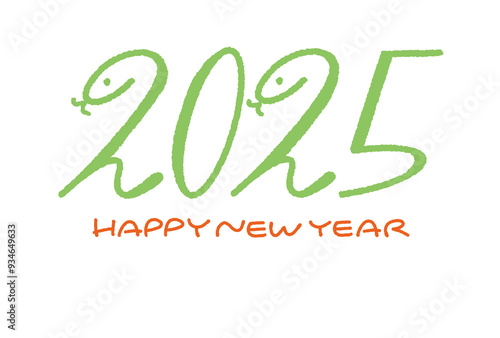 Fototapeta premium 2025年のシルエットの蛇の年賀状 手描きイラスト