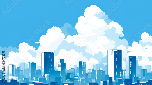 Naklejka premium 都会のビル群と入道雲のイラスト