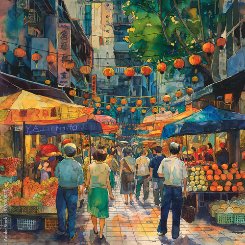 © Carry, Naklejka premium 游客在城镇的购物中心挑选商品