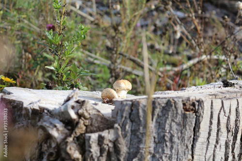 Obraz premium Грибы, растущие на пне