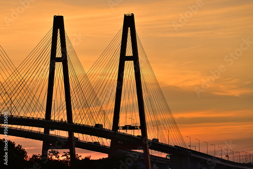 © Kazuyoshi Ozaki, Obraz premium 朝日に染まる名港トリトン
