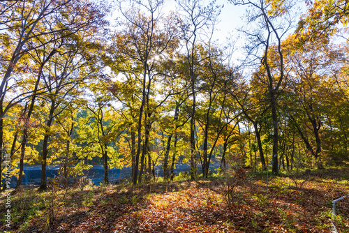 © Yuta1127, Fototapeta premium 日本の風景・秋 埼玉県長瀞町 紅葉の秩父長瀞 蓬莱島