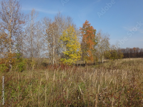 © keleny, Fototapeta premium Осеннее поле с желтой травой в солнечный день