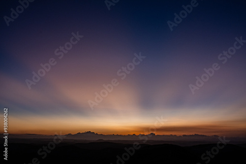 © nagi, Obraz premium 地平線に太陽が沈んでいく夕方の空