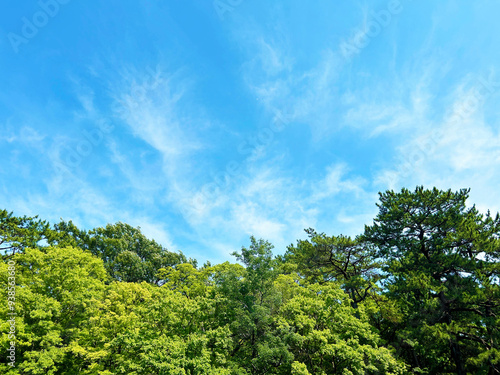 Obraz premium 晴れた日の森林と空模様