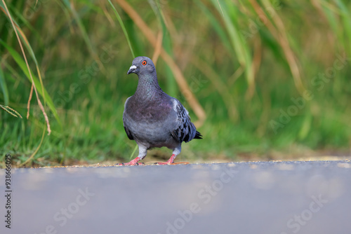 Obraz premium 歩道で餌を探す野生のハト