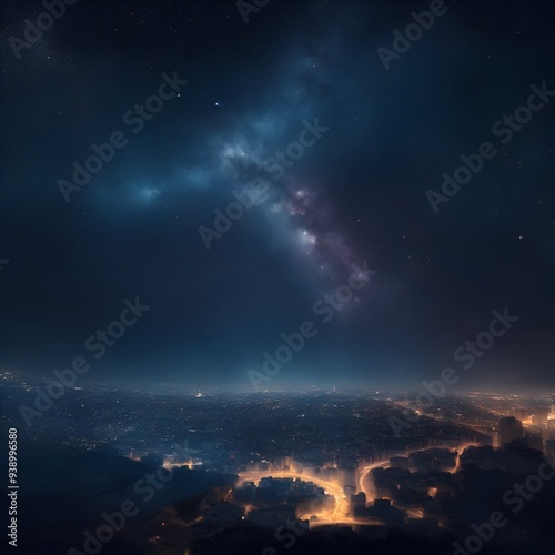 © Coro, Fototapeta premium 美しい夜空と夜景の風景