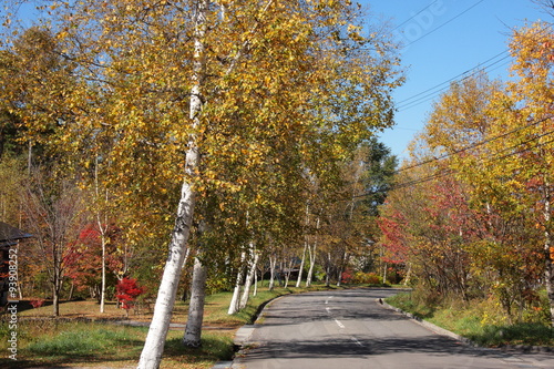 © yorky's, Naklejka premium 紅葉した街路樹のある通り