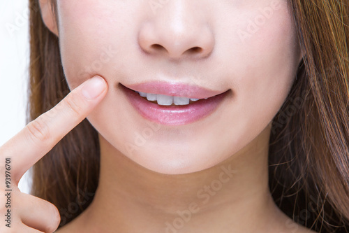 Obraz premium 口角を指差す若い女性