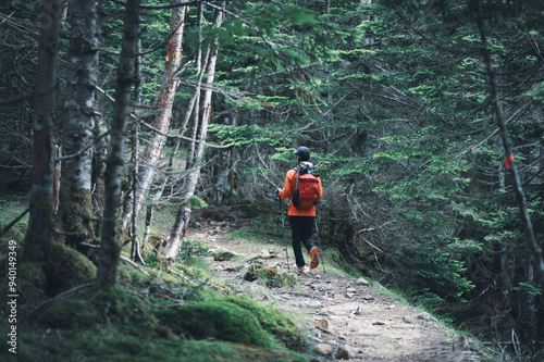 © tky15lenz, Fototapeta premium 八ヶ岳 白駒の森を歩くハイカー