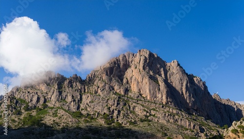 Fototapeta premium 웅장하게 솟아오른 바위산과 안개