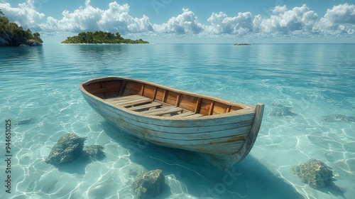 © NOREAL, Naklejka premium 透き通った海に浮かぶボート