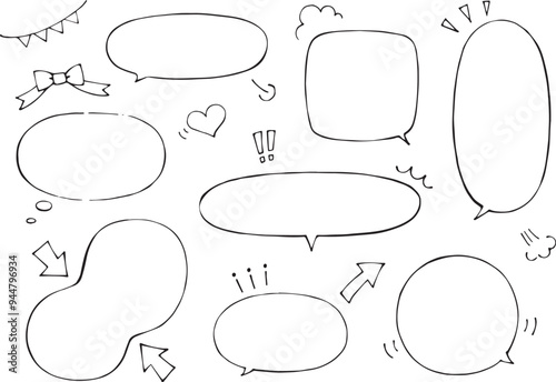 © Yakko AS, Obraz premium 手描きの丸い吹きだしセット