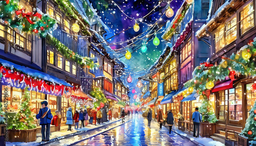 © moto_s29, Naklejka premium イルミネーションが輝く商店街 04