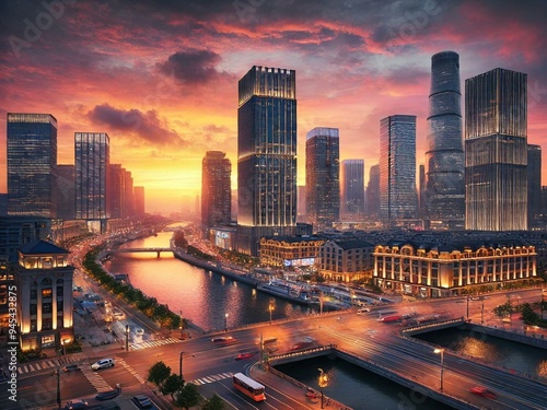 Obraz premium モダンシティスケープ サンセット