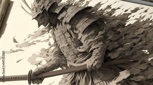 © YOSHI, Fototapeta premium 立体的に書かれた侍