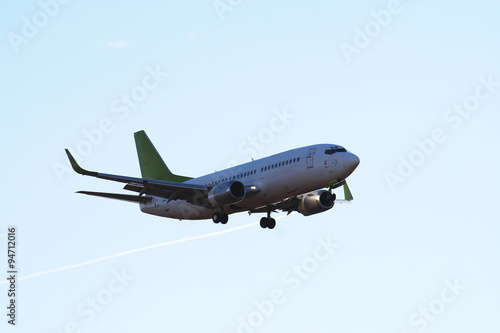 Obraz premium Пассажирский самолет на фоне голубого неба.